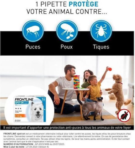 Frontline Spot On Dog Flea Tick Control Dogs S 2-10kg 3 Pipettes